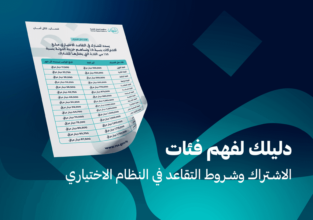 خدمة منبثقة من المنظومة ومستندة لقانون التقاعد والضمان الاجتماعي للعمال رقم (18) لسنة 2023 تستهدف المواطنين العاملين في قطاع العمل غير المنظّم (الأعمال الحرة)، وذلك بهدف حماية مستقبل الأُسر العراقية، وتأمين حصولهم على راتب تقاعدي مدى الحياة للشخص المستحق وللخلف من بعده.